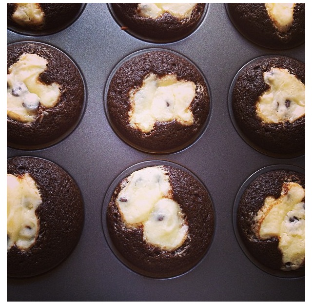 it’s genius really – someone figured out a way to breed the chocolate cupcake with cheesecake. the devil’s food cake outer part of the cupcake is rich and moist, and then you have the creamy cheesecake center, flecked with chocolate chips that melt in your mouth.