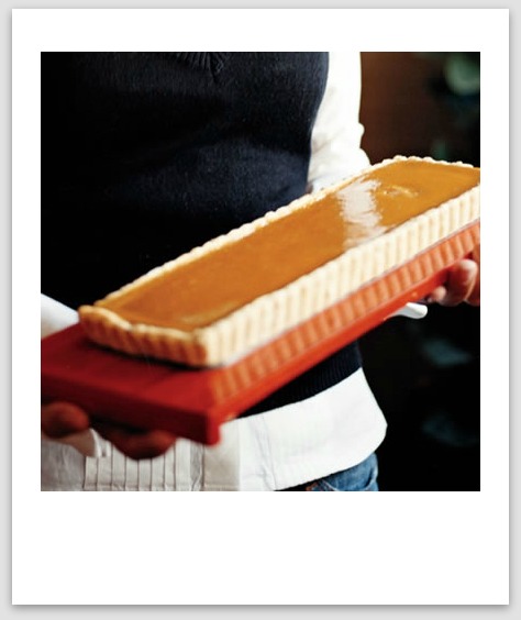 1. preheat the oven to 375. roll out the dough and press into a 4×14 inch rectangular or 9 inch round tart pan with removable bottom; trim the top edge. set the pan on a baking sheet. prick the dough several times with a fork and bake until lightly golden, 15 minutes. (prick the tart shell if the dough puffs up during baking.)