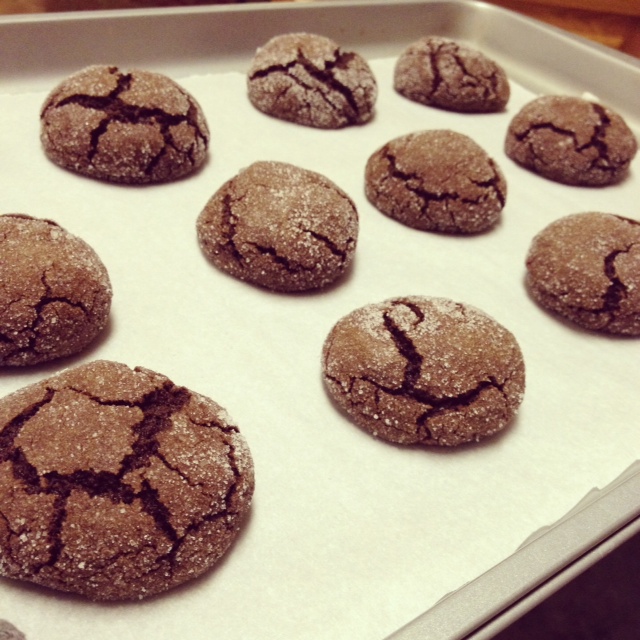 4. bake (1 sheet at a time) for 11-13 minutes, until cookies have set and the tops have cracked. let cool on the baking sheet for several minutes. (store in an airtight container or ziploc bag at room temp for up to 1 week.)