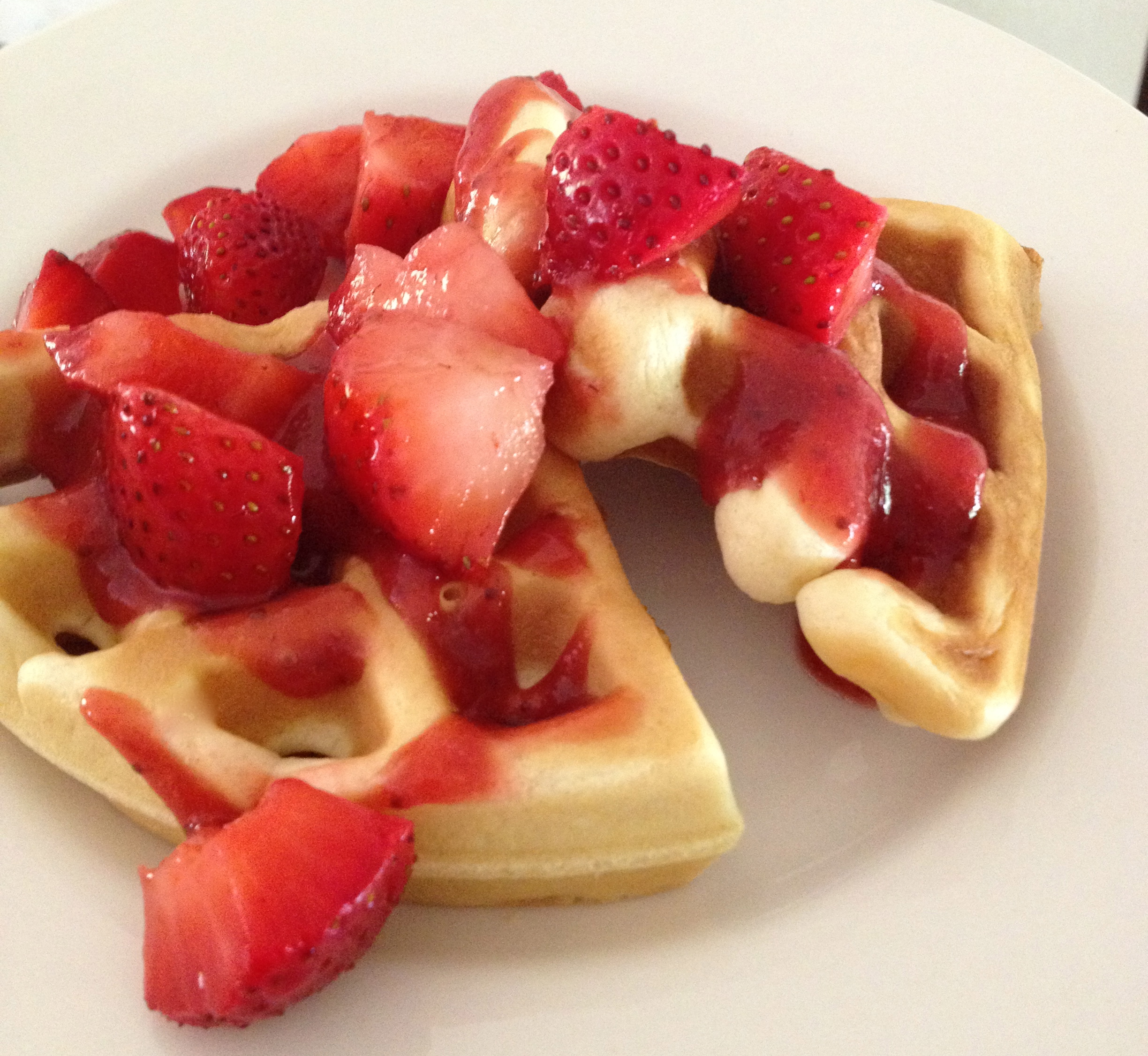 serve warm waffles with fresh strawberries, strawberry sauce, and homemade whipped cream. but they’re also perfectly simple and delicious just with maple syrup.